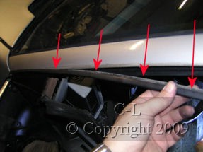 14 - Remove the roof drip moulding. Grab the back section and pull outward.